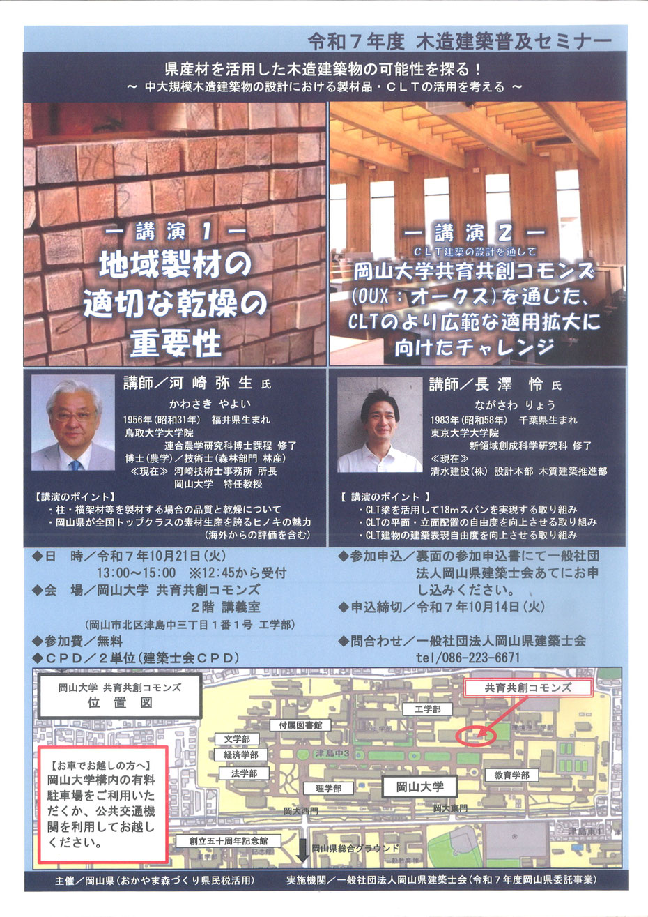 岡山大学 共育共創コモンズ にて総会を開催しました。また同時に 主催:岡山県 実施機関:岡山県建築士会による、「木造建築普及セミナー」が開催され おかやま緑のネットワークの会員が参加しました。